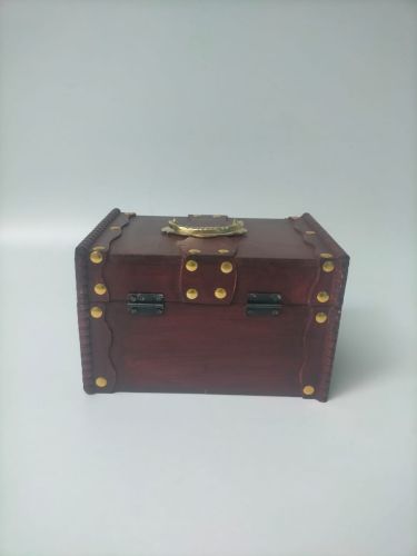 Rectangular Curved Lid Vintage Wooden Chest with Golden Accents